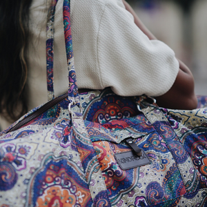 Available in multiple bold patterns, these duffel bags are sure to bring on the compliments.