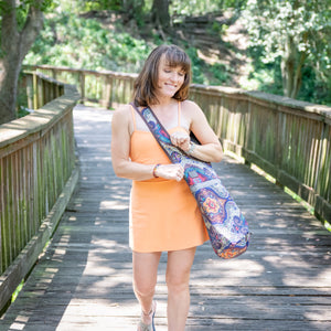 I love my yoga bag. The colors are vibrant and has plenty of room inside for everyday necessities.