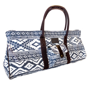 Well-made, sturdy canvas material. It's big enough for my Lululemon mat AND yoga block. I only wish it had D rings on the ends so that I could add a shoulder strap.
